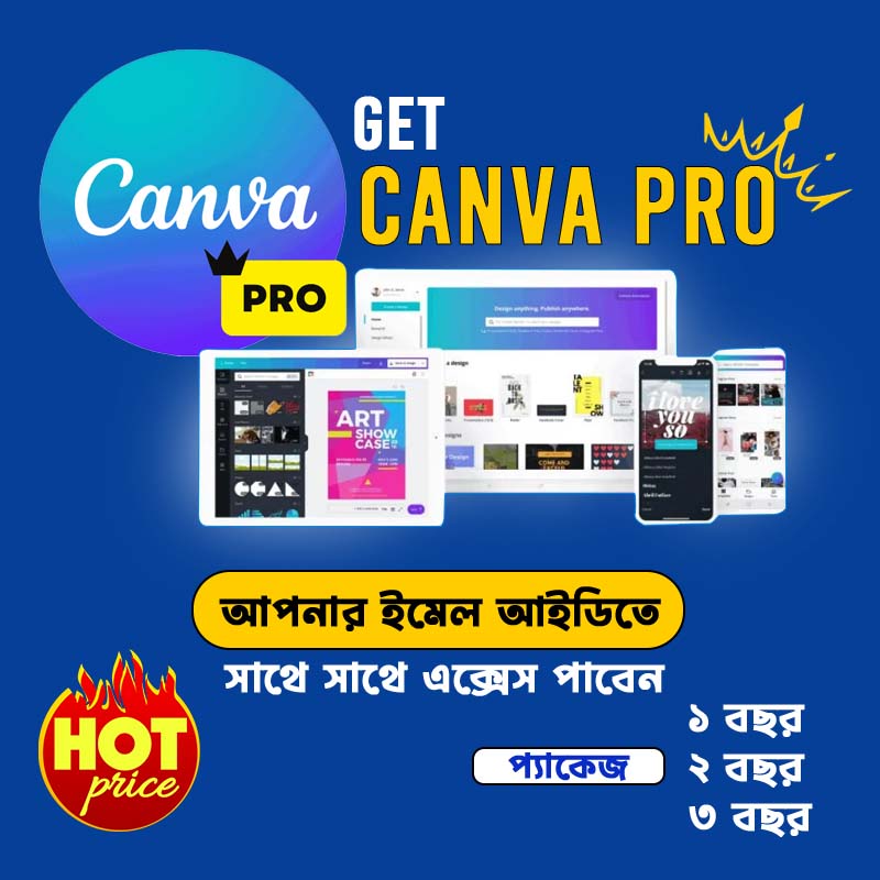 মূল সুবিধা: ১২ কোটি+ প্রিমিয়াম টেমপ্লেট, BG Remover, Brand Kit।